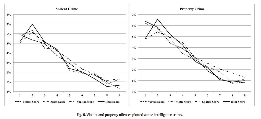 Intelligence and criminal behavior: http://www.sciencedirect.com/science/article/pii/S016028961500077X
