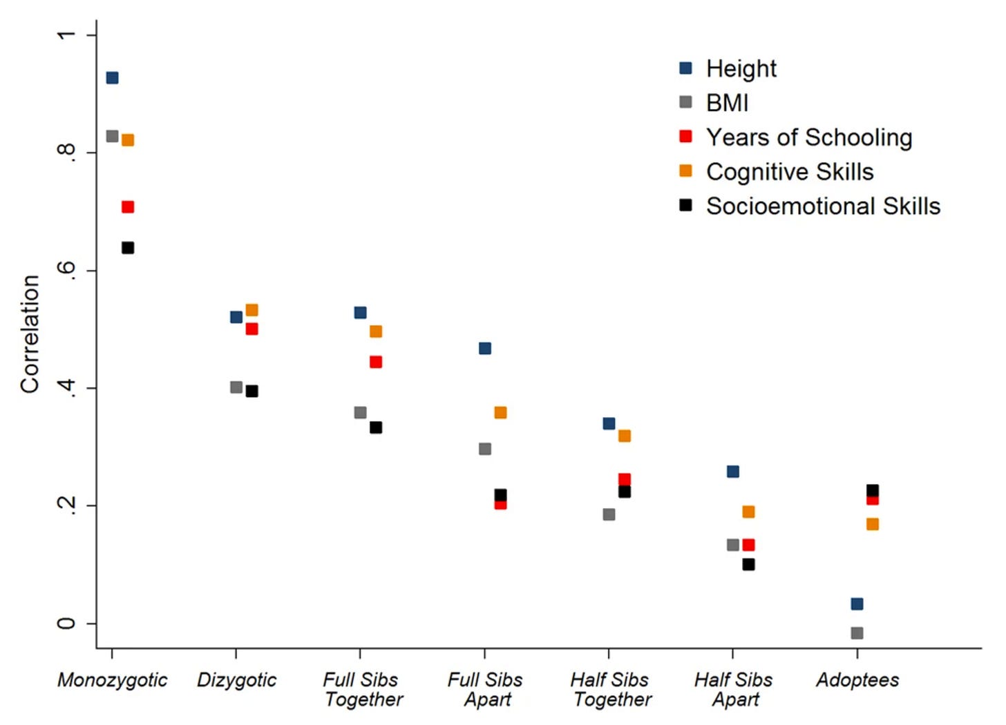 26. Study analyzes 15 years of data on Finnish twins and finds that "54% of the variance of men’s lifetime income is due to genetic factors and that the contribution of the shared environment is negligible." https://helda.helsinki.fi/server/api/core/bitstreams/6fecb8ea-b600-4f5a-83a2-273022d11e55/content